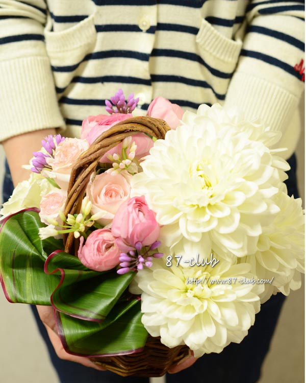 ダリア・ラナンキュラス・バラ・カーネーション・マム・アジサイ・ドラセナ
