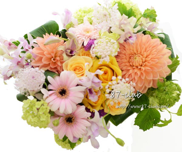 [ 花材 ]ダリア・ビバーナム・バラ・ガーベラ・シャクヤク・スターチス・シャネル・ドラセナ