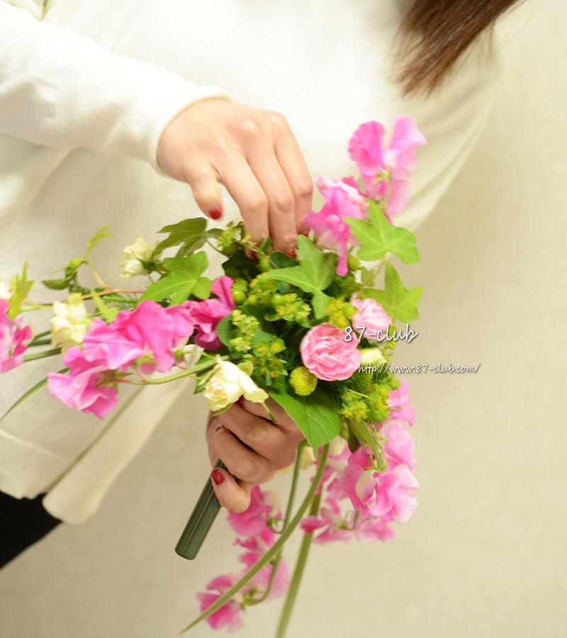 スイトピー・スプレーバラ・スプレーカーネーション・スプレーマム・ヒペリカム・ブプレリューム・ミリオグラタス・ミスカンサス・レモンリーフ・アイビー