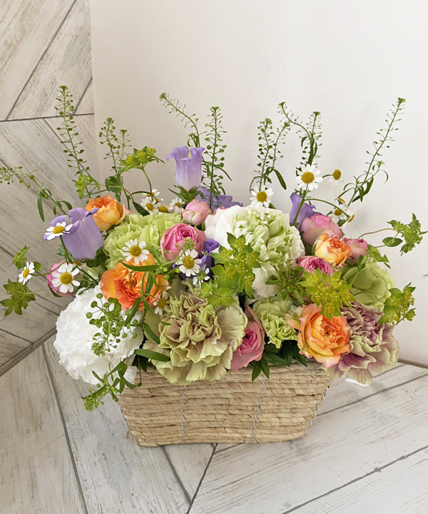 底辺ラインも全て異なる花材を隣り合わせていらっしゃいます。