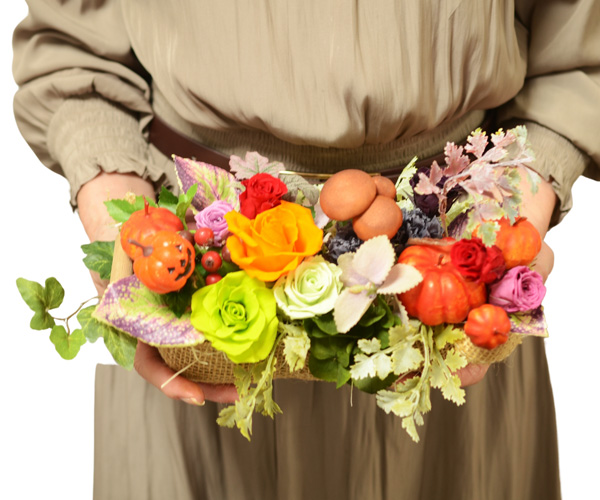 今回は、プリザーブドフラワーの「ハロウィンアレンジメント」のご紹介です。