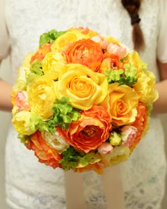 挙式用を生花で、お色直し用をプリザーブドやシルクにされる方が多いですね。